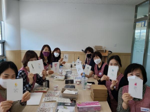 고강도 사회적 거리두기로 답답하고 힘겨운 상황을 보내고 있을 시민들을 응원하기 위해 시립도서관과 자원봉사자들이 봄꽃들의 압화를 이용한 캘리그라피 응원엽서를 제작하였다.