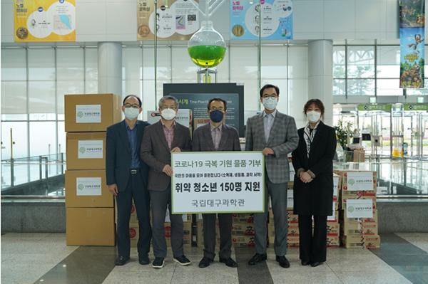 국립대구과학관은 달성군 청소년센터 방과후 수업에 참여하는 지역 취약 청소년 150여명에게 과학서적, 손소독 티슈, 라면, 햇반 등을 전달하며 코로나19 위기를 함께 극복해 나가기 위한 응원에 동참했다.