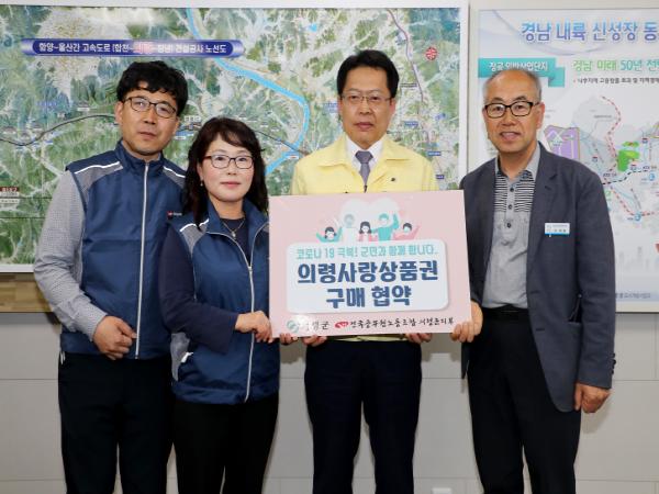 의령군청 공무원들이 코로나19로 지역경제가 위축 된 가운데 침체된 지역경제 활성화에 동참하고자 의령사랑상품권을 급여에서 추가 구매하기로 의령군(군수 권한대행 신정민)과 협약했다고 20일 밝혔다.