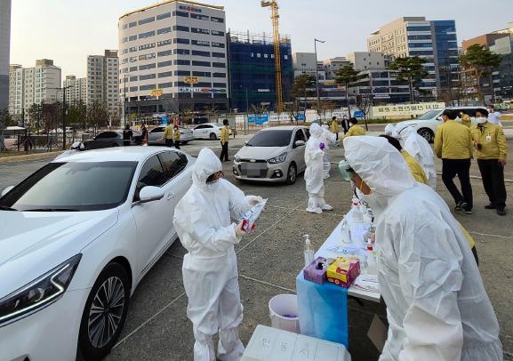 시는 지난 15일부터 18일까지 경북도서관 임시 주차장에 현장임시선별진료소를 설치하고, 보건소 가용 인력을 총동원해 드라이브 스루 방식으로 검진을 하고 검체를 채취했다.