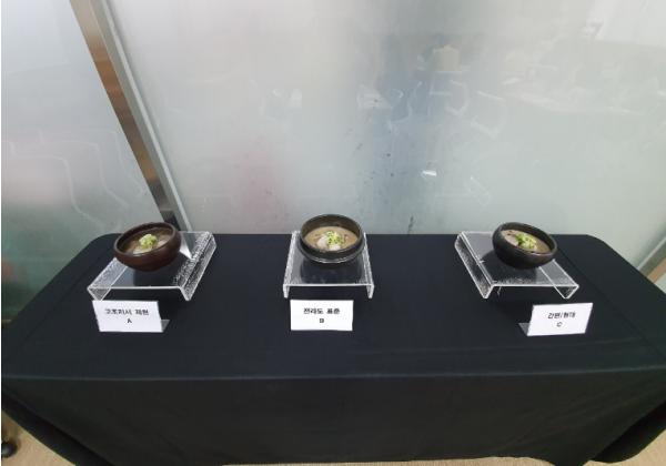 이번 연구용역 중간보고회에서는 발굴한 고조리서 재현식, 전라도 표준식, 간편ㆍ현대식 등 3가지 레시피 개발 과정과 곡성 토란탕만의 브랜딩을 위한 방향을 제시하였다. 또한 토란탕 3가지를 직접 선보여 시식 및 관능평가를 진행했다.