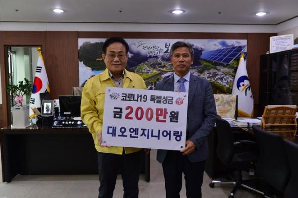 대오엔지니어링(대표 노정규)에서 4월 17일(금) 봉화군청을 방문하여 코로나19 극복을 위한 특별성금 200만원을 기탁했다.
