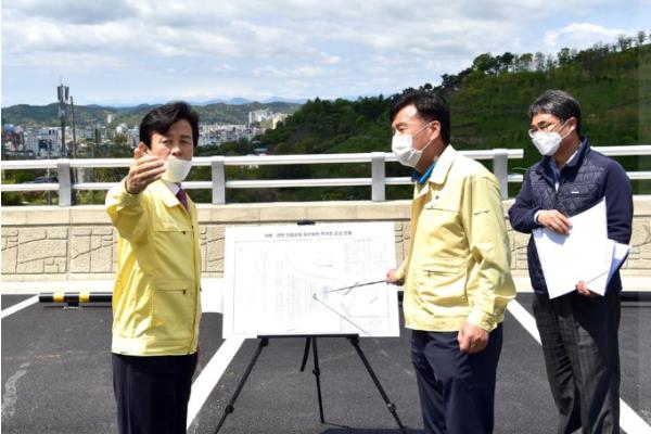 이날 현장은 찾은 조 시장은“비봉산과 선학산 등산로 입구인 말티고개 봉황교 앞 주차장 조성을 통해 등산객들을 위한 편리한 산행환경이 만들어 질 것으로 기대된다”며,“가로등 설치와 조경식재 등 남아 있는 공정도 조속히 완료하여 빠른 시일 내 시민들이 편하게 이용할 수 있도록 최선을 다해 달라”고 당부했다.