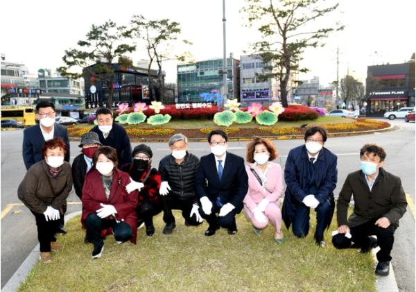 파주시는 지난 19일 금촌 회전교차로에 연꽃, 연잎 모양의 한지등(燈) 조형물을 설치했다.