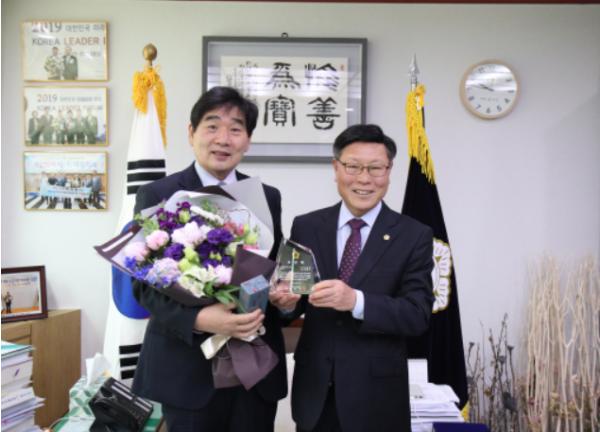 이날 전달식에서는 박석윤 의장이 박문석 경기도 시·군의회의장협의회장을 대신해 ‘주민참 여소통분야’의 최우수상을 김형수 부의장에게 전달했다.