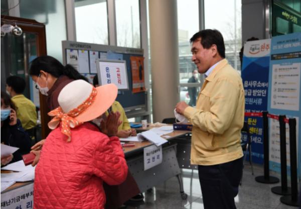 현장을 찾은 박성일 완주군수는 “주민들이 질서 있게 참여해줘 감사하다”며 “코로나19로 침체된 지역경제에 조금이나마 도움이 되길 바라고, 추후 정부의 지원금도 확정되면 차질없이 지급되도록 최선을 다하겠다”고 말했다.