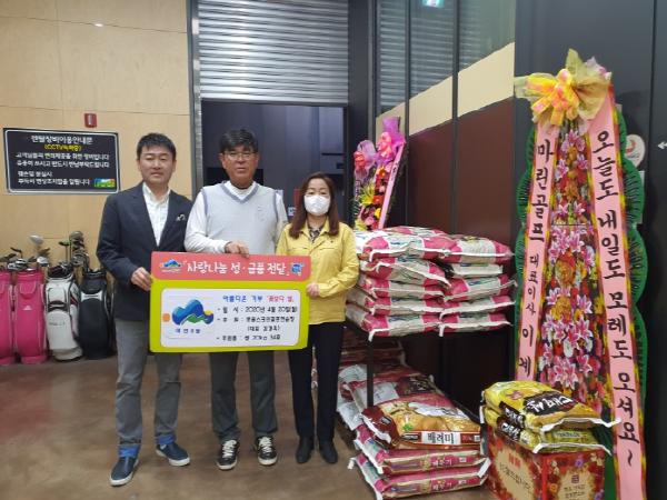 이 날 기부한 쌀은 38포(20kg), 4포(10kg)로 못골스크린골프연습장의 뜻에 따라 코로나 19로 어려움을 겪고 있는 저소득층 40세대에 전달될 예정이다.
