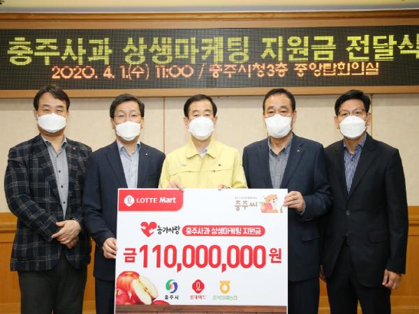 농산물 상생마케팅은 충주시 예산 3000만 원과 충북원협 3천만 원, 롯데마트 5천만 원 등 총 1억1천만 원의 후원금으로 마련됐다.