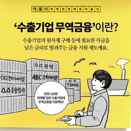 “코로나19로 피해를 입은 수출기업에 무역금융을 지원해요!”