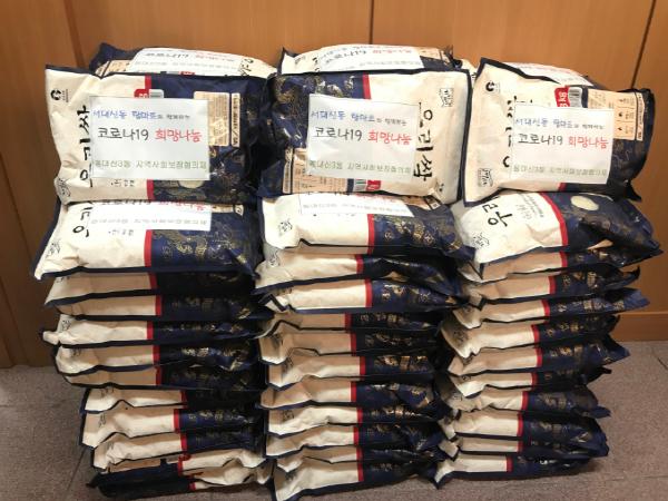 서구 서대신동 탑마트 백미 전달, 코로나19 희망나눠~