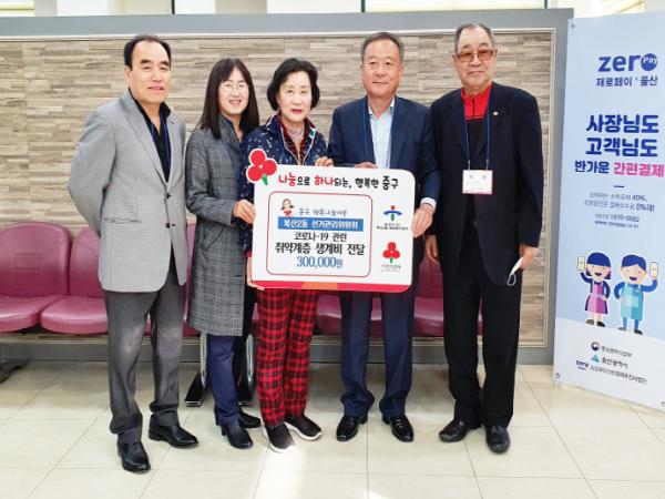 이날 후원금 기탁은 복산2동 지역 내 최근 전국적으로 확산되고 있는 코로나19에 취약한 계층들을 돕기 위해 추진됐다.