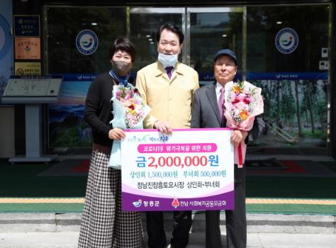 21일 정남진장흥토요시장 상인회(회장 김영실)와 부녀회(회장 김수라)는 코로나19 위기 극복을 위해 써달라며 각각 150만원과 50만원을 장흥군에 기탁했다.