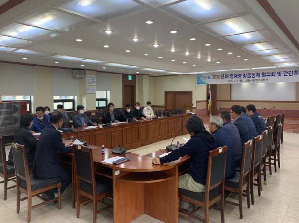 남원시 농업기술센터(소장 나상우)는 20일 지역별 적기 공동방제를 위한 ‘벼 병해충 항공방제추진단 업무협의회 및 간담회’를 개최했다. 이날 농약 피해 최소화를 위한 업무협의회 및 간담회에서는 위원 및 간사, 친환경쌀연합회장, 양봉협회 회장, 시설농가대표 16명이 참석하여 약제 선정과 방제일정을 조율하였다.