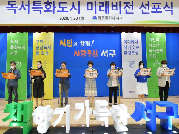 광주광역시 서구(구청장 서대석)는 20일 서구청 대회의실에서 작은도서관, 독서동아리, 독서단체, 지역주민이 참석한 가운데 ‘독서특화도시 미래비전 선포식'을 개최했다.