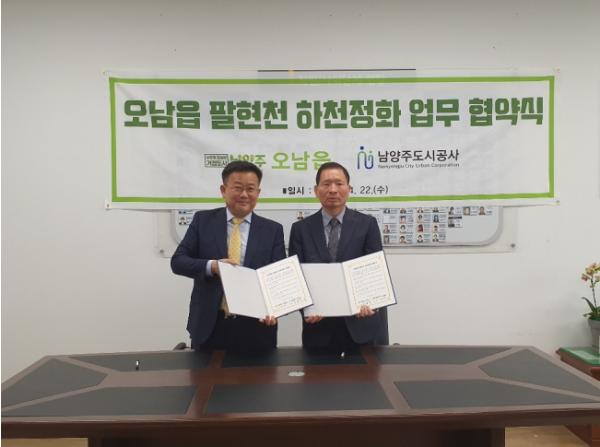 오남읍(읍장 이형우)은 지난 22일 오남읍사무소에서 남양주도시공사와 팔현천 하천정화 업무협약(MOU)을 체결했다.