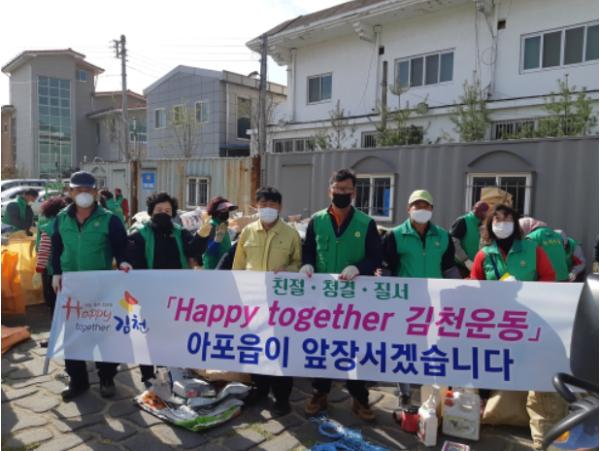 이날 이정하 아포읍장은 “코로나 19 바이러스로 모두가 어렵고 힘든 시기와 본격적인 농번기를 앞두고 영농준비에 바쁜 나날이 이어 지는 가운데 새마을 남·여지도자분들이 아포읍과 지역사회를 위한 해피투게더 청결 김천 운동에 적극 동참해주시어 정말 감사드리며, 항상 깨끗하고 아름답고 살기좋은 아포읍의 환경이 조성될 수 있도록 해주는 것은 새마을 남녀 지도자분들의 열정적인 봉사 덕분”이라고 격려 하며 앞으로도 아포읍과 지역 발전을 위하여 많은 활동을 해 줄 것을 당부하면서 그 고마음을 나타냈다.