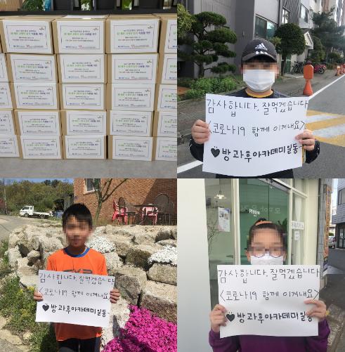 청소년방과후아카데미 관계자는 “코로나19로 인해 온라인 개학이 진행 중이긴 하지만 학교에 가지 못하고 청소년방과후아카데미도 이용하지 못하는 청소년을 위해 큰 선물을 주신 것에 감사드린다”고 전했으며, 식료품 키트를 받은 청소년들은 코로나19 함께 이겨내자는 팻말을 들고 감사의 마음을 표현했다.