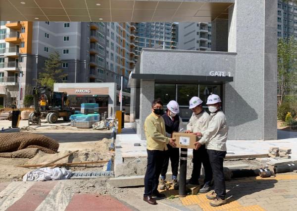 또한, 진주시는 지난 4월 16일부터 21일에 걸쳐 근로자들의 보건관리를 위하여 관내 공동주택 건설현장 7개소에 손소독제 200개를 지급했다.
