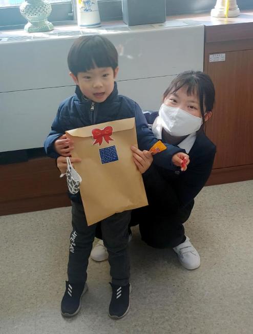 이날 윤정호 어린이가 기탁한 코로나19 예방 3종 세트는 아이가 손수 서류봉투에 물품을 넣고, “제가 갖고 싶은 장난감을 사는 대신에 어려운 친구들을 위해 작은 선물을 준비했어요. 코로나19 바이러스 대신 행복바이러스가 널리 퍼졌으면 좋겠어요”라는 메모 스티커를 붙여, 보는 사람들로 하여금 미소를 짓게 했다.