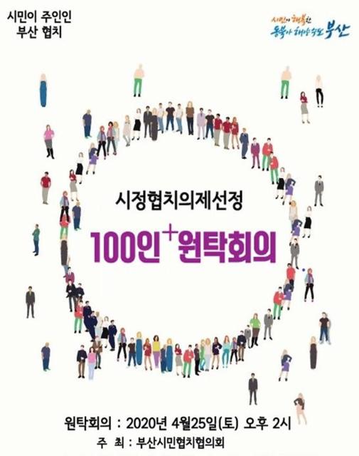 부산시는 25일 오후 2시 시민들이 제안한 시정협치 의제의 선정을 위해 온라인으로 100인 원탁토론을 개최한다고 밝혔다.