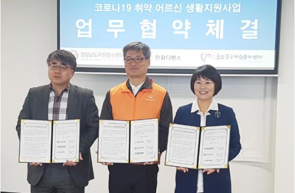 (사)울산중구자원봉사센터(센터장 오정숙)는 23일 경남자원봉사센터 교육관에서 경상남도자원봉사센터(센터장 하성규), 한화디펜스(1사업장 센터장 정형동)와 함께 ‘사랑의 안전 경량 리어카 사업’을 추진하기 위한 업무 협약을 체결했다.