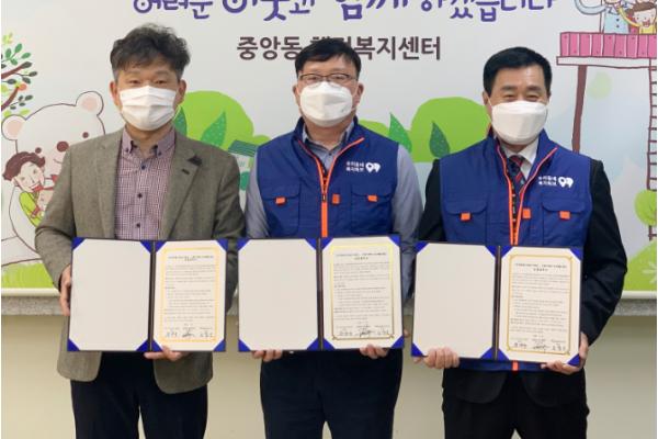 중앙동 행정복지센터는 1일 오전 10시 센터 1층에서 동 지역사회보장협의체, 한국야쿠르트 병영점과 함께 ‘우리 함께 안부 인사해요’ 사업의 업무 협약을 체결했다.
