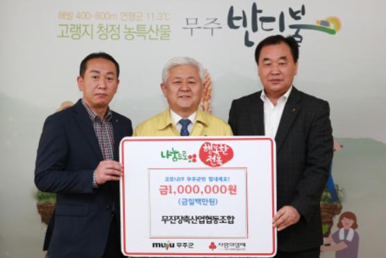 코로나19 예방과 극복 열기가 뜨거운 가운데 재난상황으로 어려워진 이웃을 돕기 위한 마음들도 끊이질 않고 있다. 지난 24일에는 새론건설에서 성금 1백만 원을, 무진장축산업협동조합에서도 1백만 원의 성금을 기탁해왔다.
