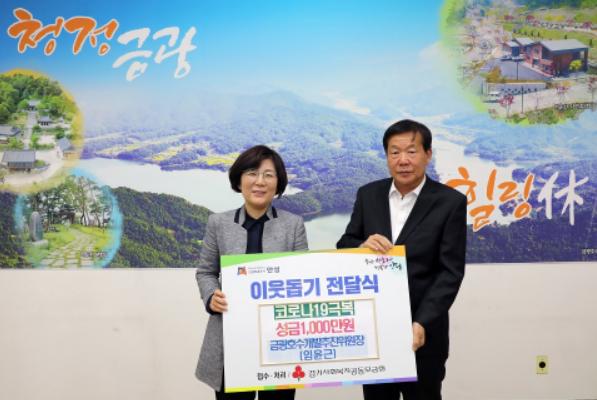 임윤근 금광호수개발 추진위원장은 지난 23일, 코로나19로 어려움을 겪고 있는 취약계층에게 써달라며 성금1,000만원을 안성시에 기탁했다.