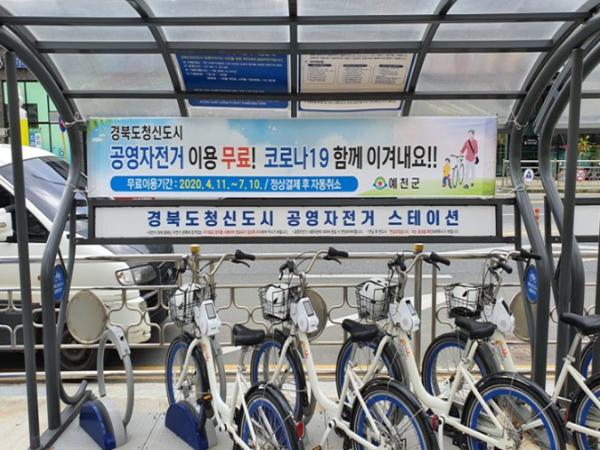 예천군(군수 김학동)은 코로나19 확산으로 어려움을 겪고 있는 주민들의 부담을 덜어주기 위해 경북도청신도시 공영자전거를 7월 10일까지 무료로 운영한다고 밝혔다.