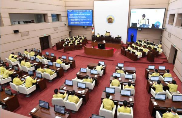 이날 본회의를 진행한 김지수 의장은 “이번 임시회 기간동안 도정질문과 각종 조례안심사, 현지 활동 등 다양한 의정활동을 통해 내실있는 회기가 되도록 노력하였다”면서 “코로나19가 완전히 종식될 때까지 긴장의 끈을 놓아서는 안 되며, 이 어려운 상황을 이겨낼 수 있도록 모두가 끝까지 힘을 모아 주시기를 바란다.”고 말했다.