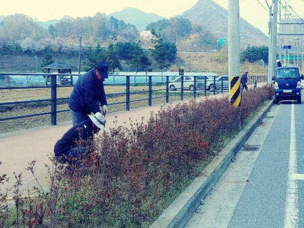 이번 작업은 도로변 가로경관 개선과 경관 확보를 위해 산림녹지과 일자리사업 근무자 30여 명이 투입되었다.