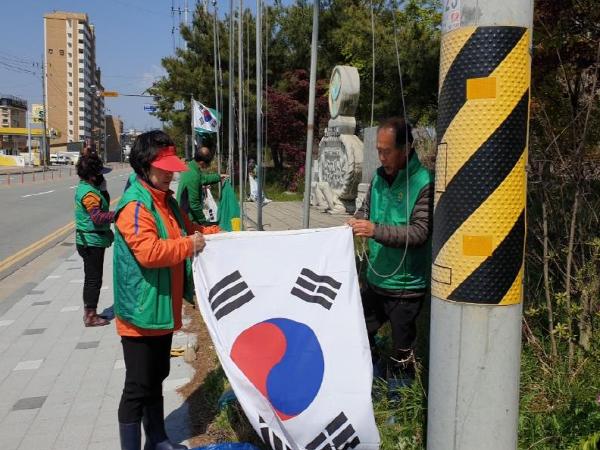 이날 행사에서는 이상욱 부강면장을 비롯한 새마을남녀협의회원 30여 명 등이 부용 삼거리 로터리에 꽃잔디를 심고, 새마을동산에 있는 태극기와 세종시기를 새것으로 교체했다.