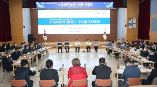 창원시(시장 허성무)는 24일 시청 시민홀에서 코로나19 극복을 위한 소상공인 지원대책의 시작을 알리기 위해 업종별 협회?단체 관계자들과 간담회를 가졌다.